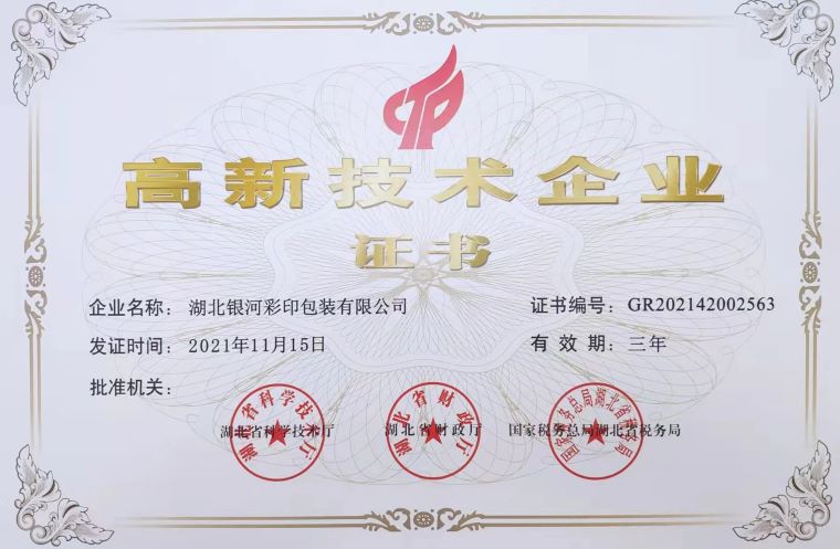 高新技術(shù)企業(yè)證書(shū)
